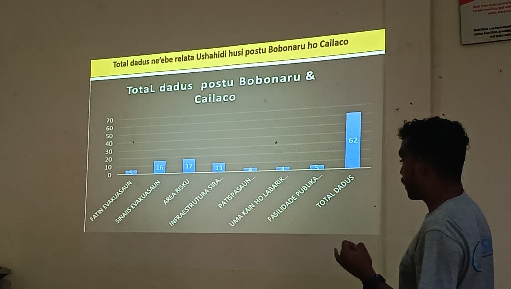 Iha fulan Novembru tinan 2025, World Vision Timor-Leste liu husi programa Disaster Ready halao ona treinamentu ba monitorizasaun uza Plataforma USHAHIDI ba ponto vokal sira husi Suco no mos funsionariu tekniku husi SMPC e GDN no APC. Plataforma ida neโ€™e ho nia objetivu atu halo assesmentu ba level inkluzaun, asesibilidade fisiku ba fatin publiku sira, identifika barreira ba grupu vulnerabilidade sira, inklui monitorizasaun ba sasan nebe ita estabelese ona iha Suco MAK HANESAN Sinais Evacuasaun, Fatin Evacuasaun nebe parseiro sira estabelesa ona, Ho nuneโ€™e iha fulan ida neโ€™e programa Disaster Ready hamutuk ho parseiru G-SIG hakarak halo revizaun hamutuk fila fali ba ferramenta nebe durante neโ€™e ponto vokal sira uja hodi hatene nia progresu. Bazeia dadus nebe ekipa ponto vokal Suco relata iha plataforma USHAHIDI.