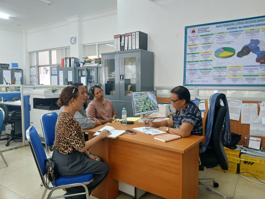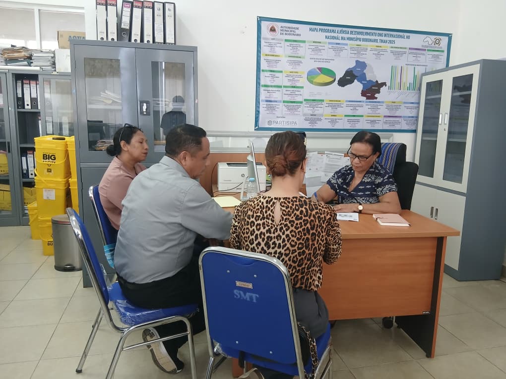 π΅πππππππ, 29 ππ π½ππππππ’ 2026, Xefe ekipa ba rejiaun 4 avaliasaun kondisaun minimu husi nasional hasoru malu ho Diretora Servisu Municipal Apoio OrganizaΓ§Γ΅es NΓ£o Govermentais e Γ s OrganizaΓ§Γ΅es Comunitaria iha Diresaun Apoio SMAONG e OC nia fatin ligado atualizasaun dadus Monografia no Demografia suku 50 iha Municipio Bobonaro, neβebe atualizado no inserta iha sistema SIIGSA.