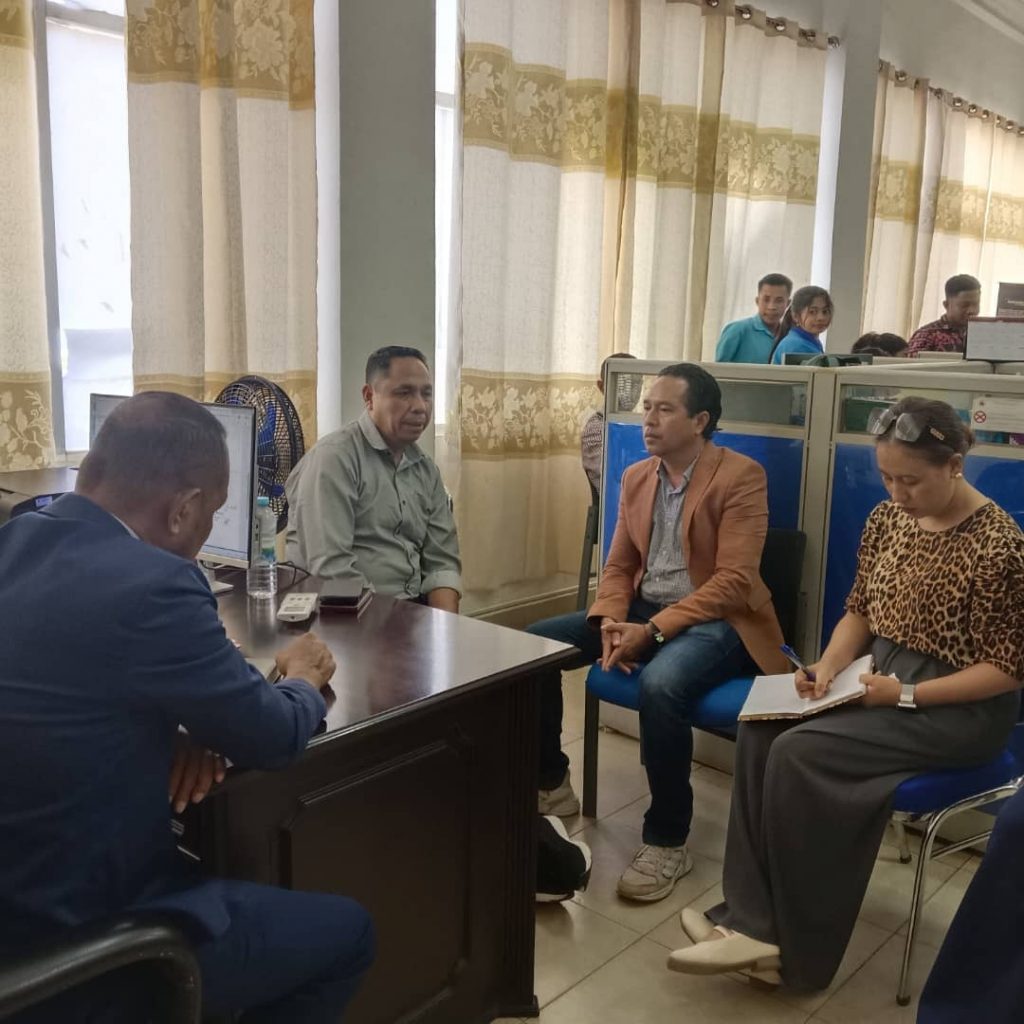 Ohin loron Quinta, 29/01/2026, Ekipa Avaliasaun Kondisaun MΓ­nimu ne’ebΓ© lidera husi Acilino Manuel M. Branco halo  vizita servisu ba Munisipal Administrasaun Rekursu Humanus iha MunisΓ­piu Bobonaro. Vizita ne’e ho objetivu atu avalia kondisaun mΓ­nimu servisu, liuliu iha aspΓ©tu Administrativu, Infraestrutura no kapasidade funsionΓ‘riu sira.