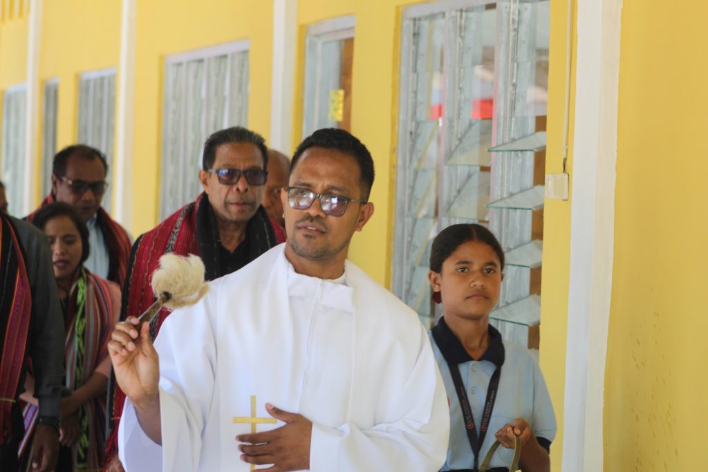 Sr. Paulo Moniz Maia. Lic.Dir,halo inagurasaun ba eskola infantil florinhas da esperansa iha posto Maliana. Tuir amo administrador Parokia Maliana haktuir katak, konstrusaun ba eskola ida ne’e, hetan apoio fundos husi Gabinete Apoio Sociedade Civil, ne’e duni ohin loron bele konstrui duni eskola ida ne’e.