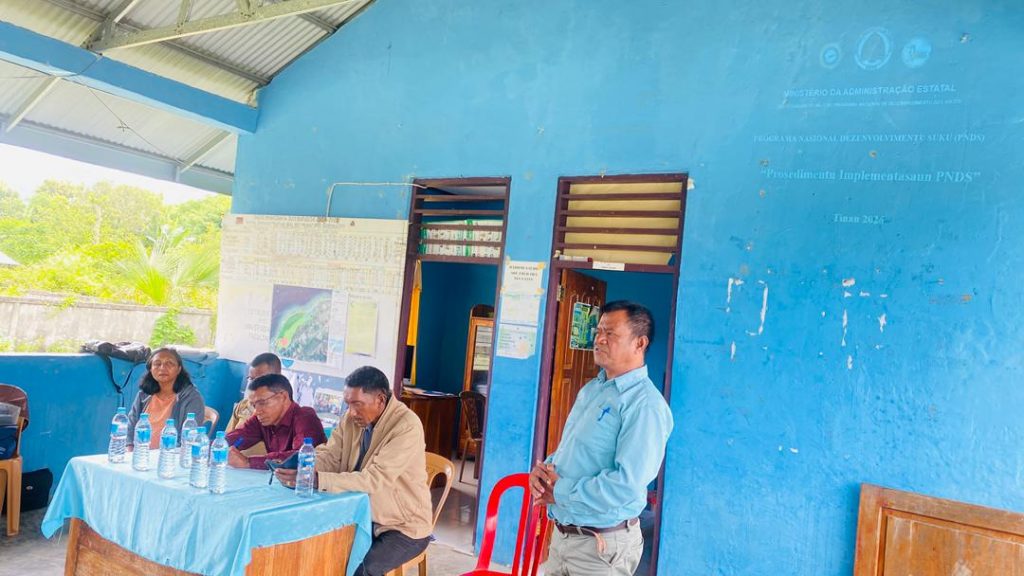 Batugade 23 Fevereiru 2026, DiretΓ³r Servisu MunisΓpiu Apoiu ba Programa Nasional Dezenvolvimentu Suku (PNDS) hamutuk ho ekipa munisΓpiu, lideransa lokal, Konsellu Suku no komunidade halaβo atividade Sosializasaun Mata Dalan PNDS ba tinan 2027 iha Suku Batugede no Suku Sanirin, Posto Administrativu Balibo.