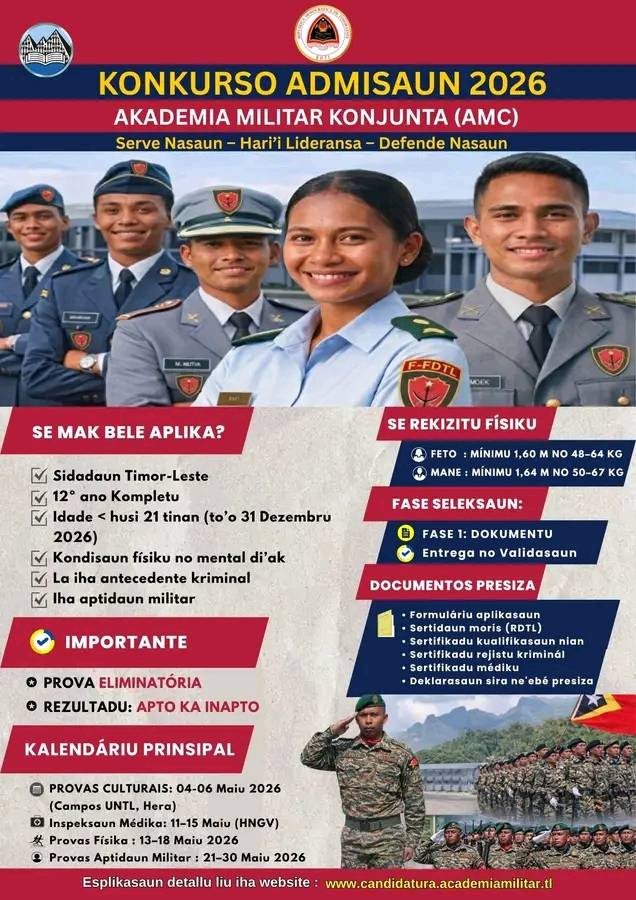 𝐊π₯𝐒𝐀 π–πžπ›π¬π’π­πž : https://candidatura.academiamilitar.tl